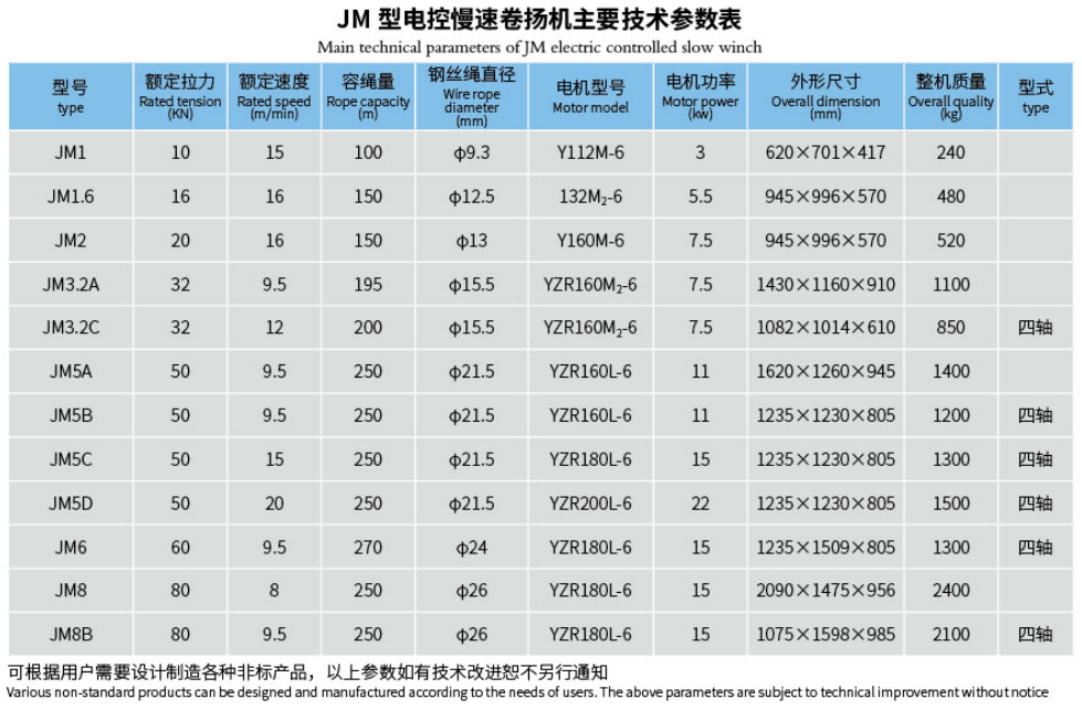 JM系列為齒輪減速機(jī)傳動卷揚(yáng)機(jī)。主要用于卷揚(yáng)、拉卸、拖拽重物。如各種大中型砼、鋼結(jié)構(gòu)及機(jī)械設(shè)備的安裝和拆卸。